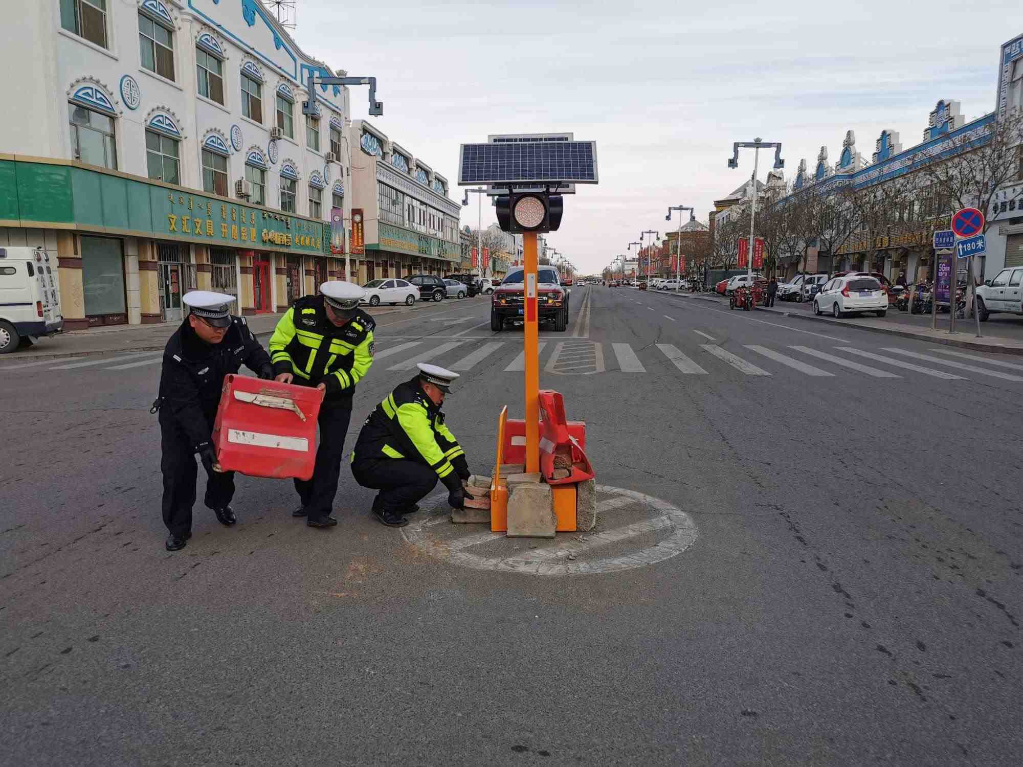 當(dāng)日,阿右旗公安局交管大隊(duì)值班民警上街面巡邏,巡邏至巴丹吉林鎮(zhèn)工商十字路口處時(shí),發(fā)現(xiàn)路口紅綠燈被撞倒,經(jīng)勘察現(xiàn)場沒有發(fā)現(xiàn)任何肇事者遺留的痕跡。
