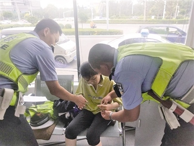 當(dāng)日,民警魏軍、張延旭、崔東迅在崗?fù)?nèi)執(zhí)勤,女孩兒進入崗?fù)ぃ樕n白滿頭是汗,沒說幾句話便暈倒并且伴有輕微抽搐癥狀,民警迅速將女孩兒扶到椅子上,初步判斷可能是中暑或者是低血糖引起,民警一邊呼叫救援一邊將高糖分飲料和冰糖喂到女孩口中,并用紙片不停地扇涼降溫,5分鐘后女孩兒逐漸緩過來,臉色也漸漸恢復(fù)血色。