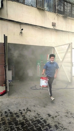“我家車庫著火了,能不能用熱力站的水幫我滅火?”張霖和徐小煒剛跑出大門口,就碰到了慌慌張張的居民。兩人立刻將皮管從窗戶伸到外面,對著車庫噴水。由于不清楚用戶車庫內(nèi)有什么易燃物品,發(fā)現(xiàn)火勢雖被控制但并沒有完全熄滅,兩人又取上站內(nèi)常備的滅火器,一邊熟練地使用一邊分析火情,并戴上防塵面罩在確保安全的情況下進入車庫內(nèi),第一時間撲滅了火源。