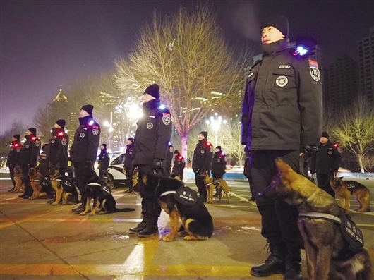 2020年12月31日19時許,首批警犬馴導員攜帶20條警犬亮相街頭,在轄區(qū)人流密集場所、購物商圈、公交站點及重點單位首次執(zhí)行巡邏任務,開啟警犬巡邏管控警務新模式。