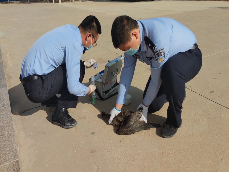 9月27日,內蒙古巴彥淖爾邊境管理支隊巴音前達門邊境派出所民警及時救助一只國家二級保護動物鸕鶿。