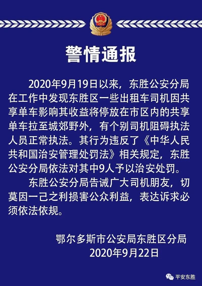 私自將共享單車?yán)两纪?9名出租車司機(jī)被處罰