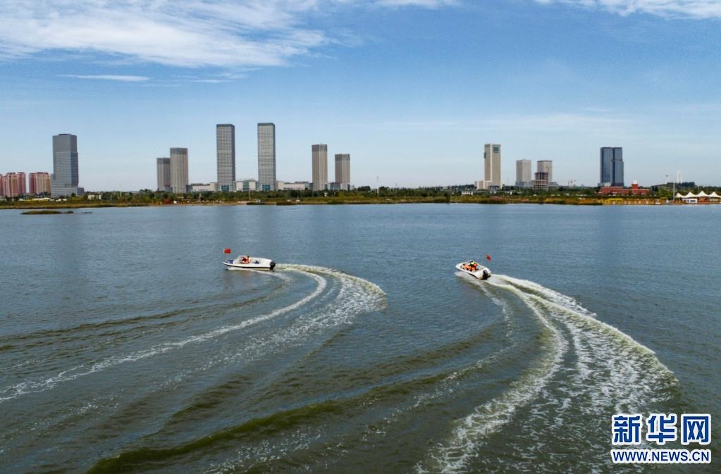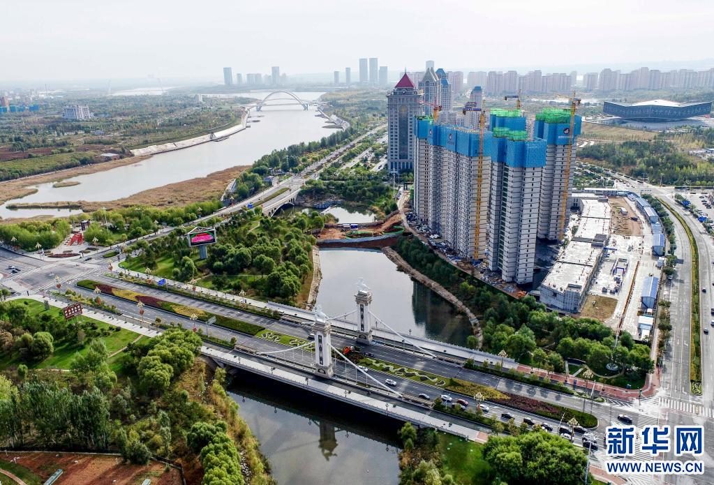 10月14日拍攝的伊金霍洛旗環(huán)城水系一景(無(wú)人機(jī)照片) 。