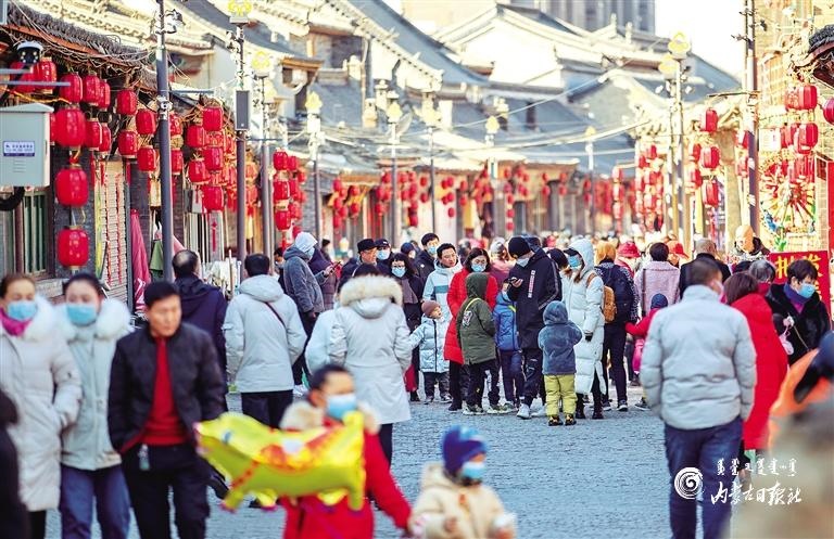 2月15日,人們在呼和浩特市玉泉區(qū)塞上老街游玩。當日是大年初四,呼和浩特市玉泉區(qū)塞上老街、通順大巷、大召步行街充滿了濃濃的年味兒,吸引人們前來逛街賞景。內蒙古日報社融媒體記者 王磊 攝