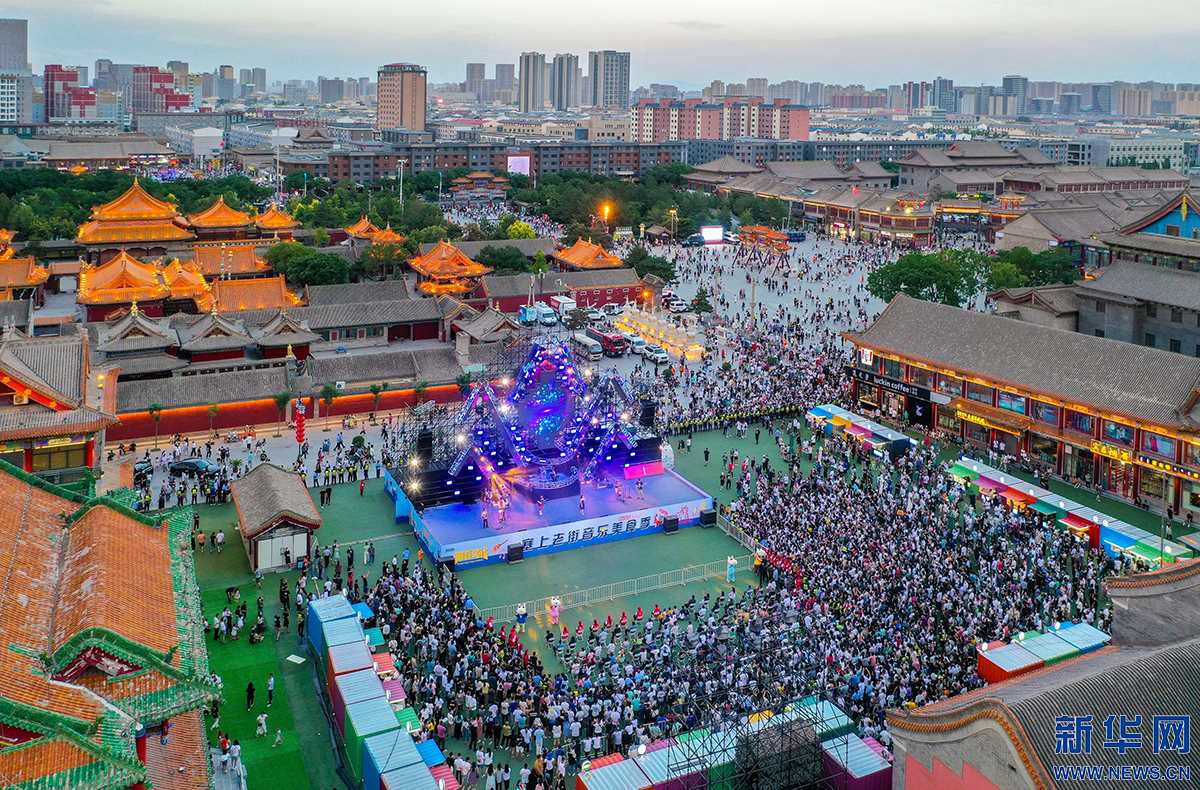 6月18日晚,2022年呼和浩特市“塞上老街音樂(lè)美食季”開(kāi)幕式現(xiàn)場(chǎng)。新華網(wǎng)發(fā)(丁根厚攝)