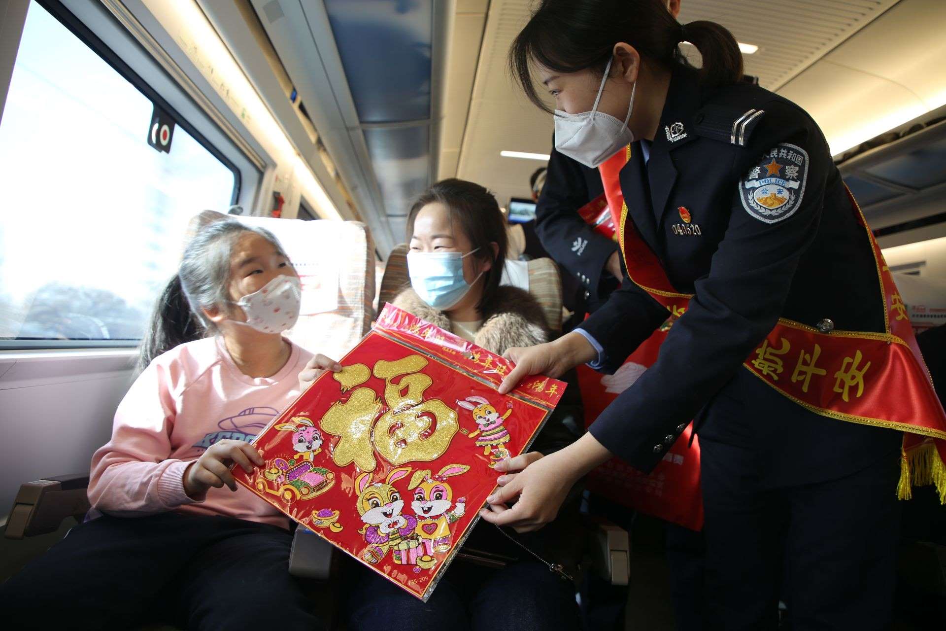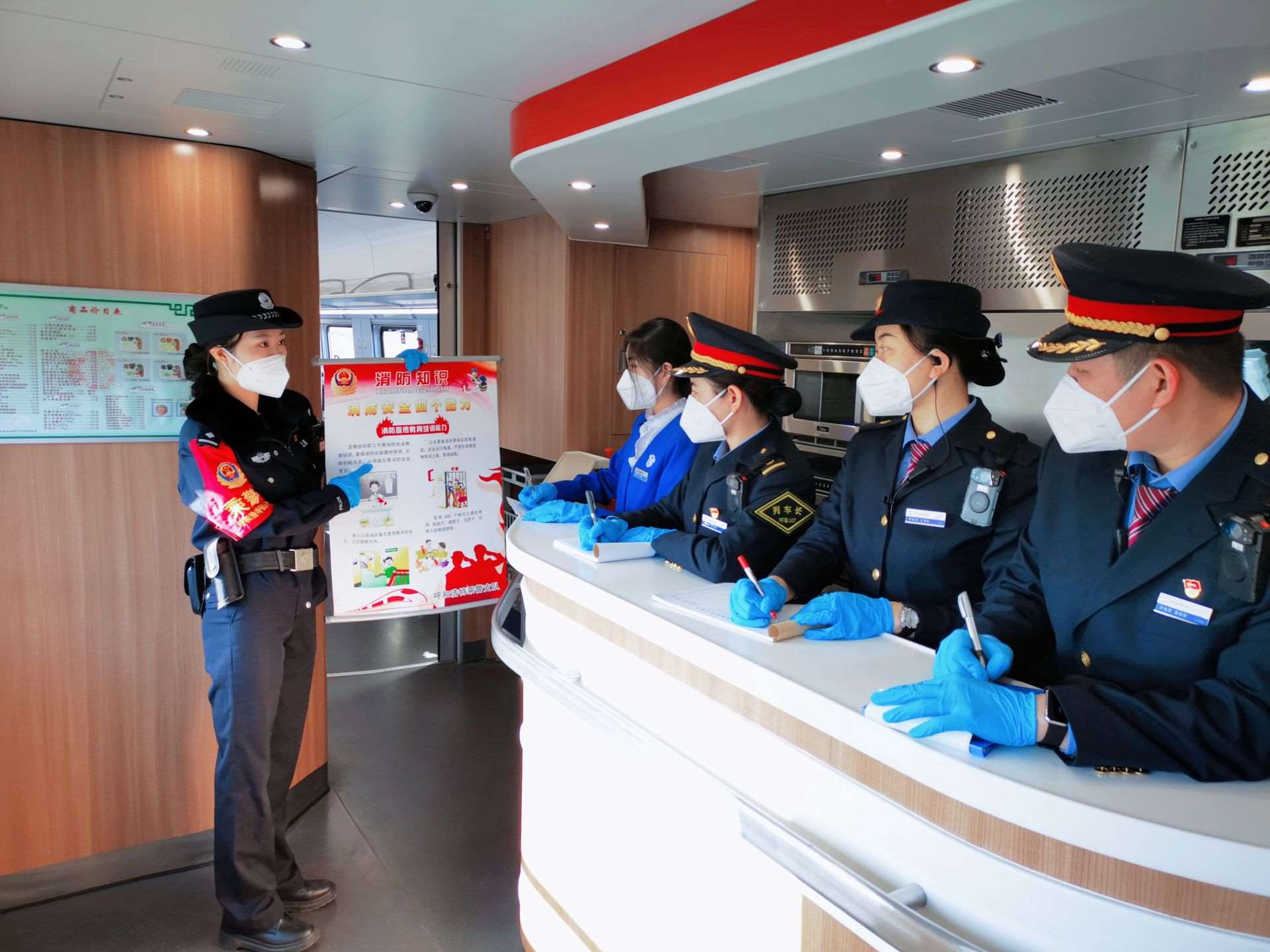 同時(shí),呼和浩特鐵路警方組織管內(nèi)各所隊(duì)、文藝小分隊(duì)進(jìn)村入戶、登乘列車,集中開(kāi)展形式多樣、內(nèi)容豐富的主題宣傳活動(dòng),通過(guò)懸掛橫幅、擺放展板、現(xiàn)場(chǎng)答疑、發(fā)放宣傳手冊(cè)、贈(zèng)送“?!弊值确绞?,向過(guò)往旅客講解出行安全常識(shí),提升旅客群眾的安全意識(shí)。