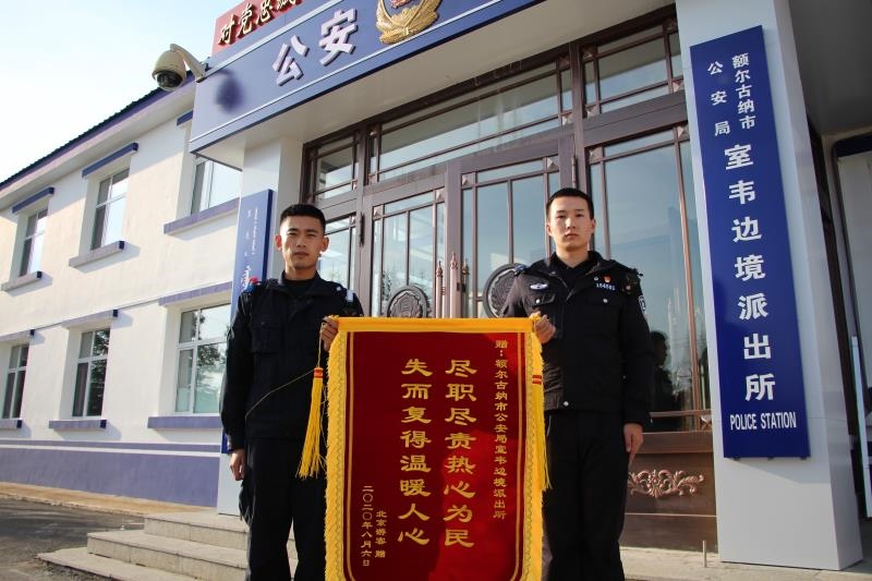 9月2日,印有“盡職盡責(zé)熱心為民,失而復(fù)得溫暖人心”的錦旗從北京郵寄到室韋邊境派出所;9月2日,一面印有“情系百姓,為民解憂”的錦旗被群眾送到恩和邊境派出所民警手中;9月3日,印有“人民衛(wèi)士,一心為民”的錦旗送到莫爾道嘎邊境派出所民警手中;9月4日,上庫力邊境派出所收到了從廣東珠江郵來了印有“人民警察為人民,服務(wù)群眾解民憂”的錦旗和一封感謝信...
