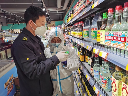 同時,市委政法委、市場監(jiān)督管理局、商務(wù)局和各社區(qū)在確保疫情防控、食品安全、供貨配送的前提下,在現(xiàn)有生活物資供應(yīng)渠道基礎(chǔ)上,再增加小區(qū)保供商店數(shù)量,保障居民基本生活物資供給?!蓖瑫r,滿洲里市市場監(jiān)督管理局始終將食品安全工作擺在重要位置,持續(xù)強化監(jiān)督檢查工作,對保供超市、保供商店銷售的商品進行嚴(yán)格檢查,確保群眾吃得安心、吃得放心。(記者 陳功利)