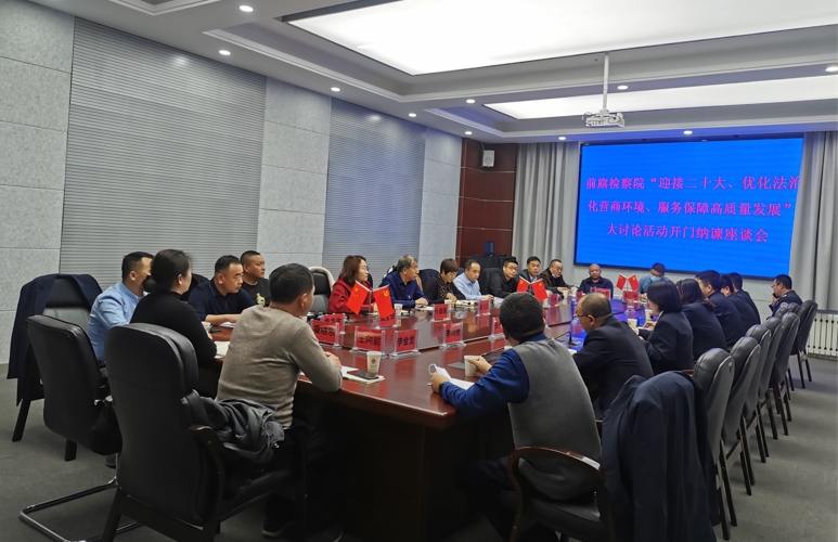 會上傳達了全區(qū)優(yōu)化營商環(huán)境的會議精神,通報了察右前旗人民檢察院“迎接二十大、優(yōu)化法治化營商環(huán)境、服務保障高質(zhì)量發(fā)展”大討論活動開展情況,介紹了院黨組下一步優(yōu)化法治化營商環(huán)境工作計劃,并希望與會代表暢所欲言,就企業(yè)發(fā)展中遇到的問題和困難以及察右前旗人民檢察院在優(yōu)化法治化營商環(huán)境方面存在的不足進行座談交流。