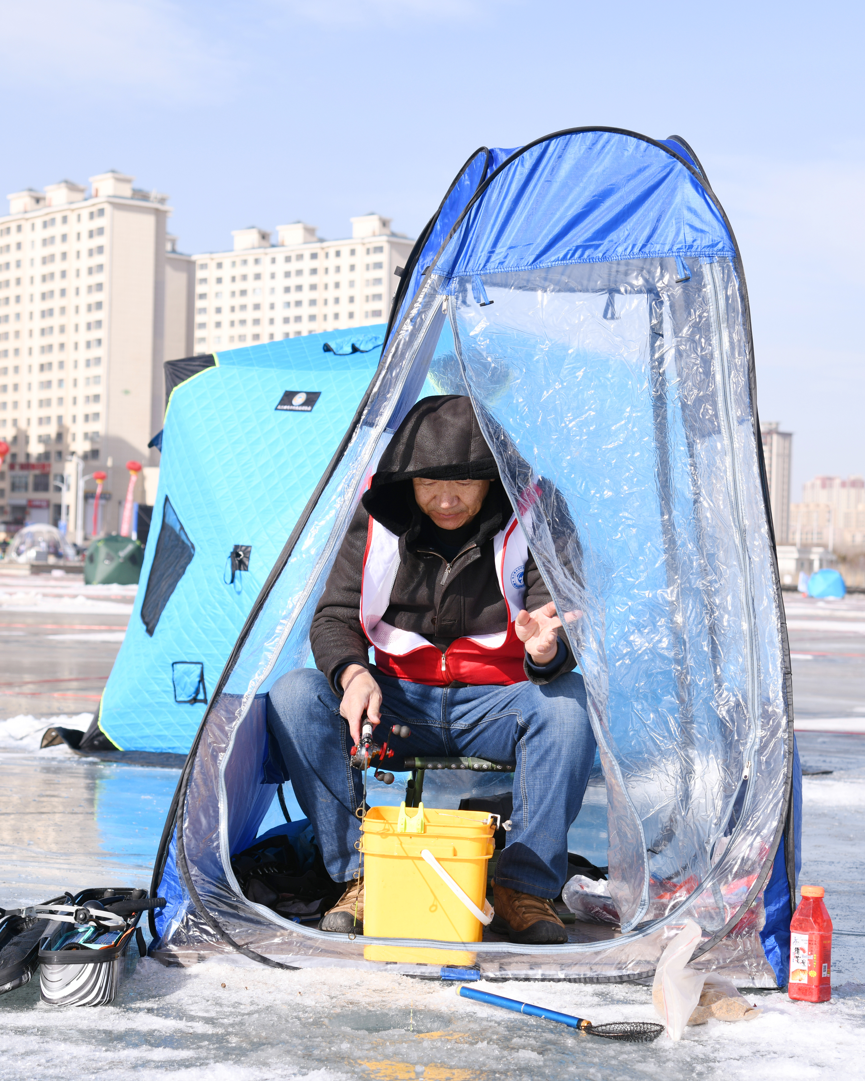 比賽現(xiàn)場,釣手們嚴(yán)格遵守比賽規(guī)則,團(tuán)結(jié)協(xié)作、頑強(qiáng)拼搏,從鑿冰破洞、搭設(shè)帳篷到操作漁具整個過程手法嫻熟,不僅賽出了風(fēng)格、賽出了水平,也展示了釣手們高超的垂釣技巧,為觀眾呈現(xiàn)了一場精彩紛呈的冰釣盛宴。