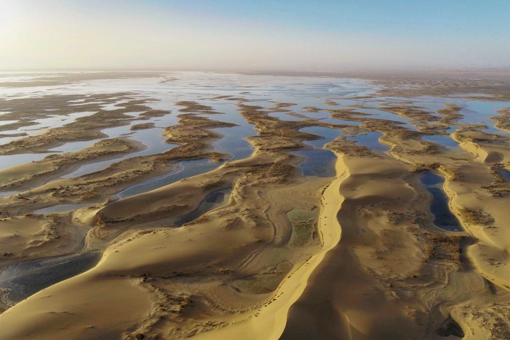 11月24日在內(nèi)蒙古烏海市拍攝的烏海湖景色(無(wú)人機(jī)照片)。