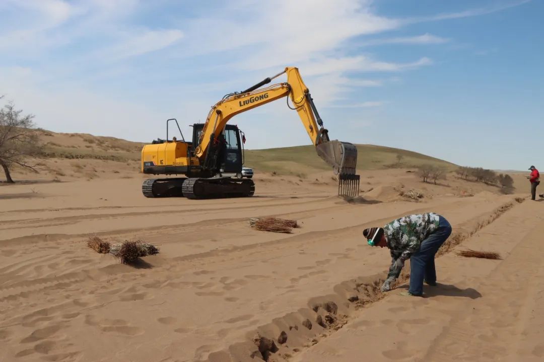 改裝后的挖掘機(jī)在治沙工作中展現(xiàn)出了強(qiáng)大的優(yōu)勢。據(jù)了解,以往人工種植時(shí),兩個(gè)人一天才能完成一畝地的工作量,五個(gè)人最多也只能處理兩畝半到三畝地。而如今,改裝后的挖掘機(jī)一天的工作量相當(dāng)于五個(gè)人種植十畝地,不僅大大提升了工作效率,還節(jié)約了大量的人力和物力。原本只能用于挖掘作業(yè)的鉤機(jī),經(jīng)過簡單改裝后,搖身一變成為防塵固沙的“利器”,為沙漠治理工作注入了新的活力。目前,合作社已投入兩臺改裝挖掘機(jī)進(jìn)行作業(yè),并計(jì)劃在未來將其數(shù)量增加至五臺,以確保按時(shí)完成2025年規(guī)劃中8.4萬畝的治理任務(wù)?! ?/p>