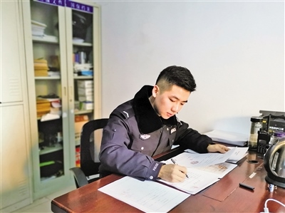 “我當(dāng)人民警察還不到一年,沒想到就趕上了中國人民警察節(jié),太榮幸了。在這里,我祝愿所有的人民警察節(jié)日快樂,平平安安?!?月8日,呼和浩特市新城區(qū)公安分局西街派出所治安民警楊國清激動地說。2020年4月,23歲的楊國清正式成為西街派出所的一名治安民警,出警處警、處理案件成為他的日常工作。入職前,警校畢業(yè)再加上經(jīng)過一段時間的實習(xí),楊國清認為這些工作應(yīng)該很容易,可當(dāng)他真正走上工作崗位后才發(fā)現(xiàn),并不像自己想象的那么簡單,需要學(xué)習(xí)的地方還很多。在工作中,他總是比別人多付出一份辛苦,不斷學(xué)習(xí),不斷請教,在實踐中積累經(jīng)驗,增強業(yè)務(wù)能力。“當(dāng)作完第一份筆錄,簽上自己名字的那一刻,我才真正感覺到自己肩上的責(zé)任重大?!睏顕甯嬖V記者。除了日常處理案件外,楊國清和搭檔3天值一次班,一值就是24小時。只要接到報警,他們會第一時間趕到現(xiàn)場進行處理。打架斗毆、偷盜搶劫、鄰里糾紛……無論是深夜還是凌晨,哪里有警情他們就奔向哪里。警察的工作不僅辛苦還很危險,與家人也聚少離多。當(dāng)記者問到是否后悔選擇這個職業(yè)時,楊國清堅定地說:“我從小的夢想就是當(dāng)一名警察,保護人民、扶危救困,全力以赴維護一方平安。每當(dāng)聽到一句感謝的話時,我覺得一切付出都是值得的。”