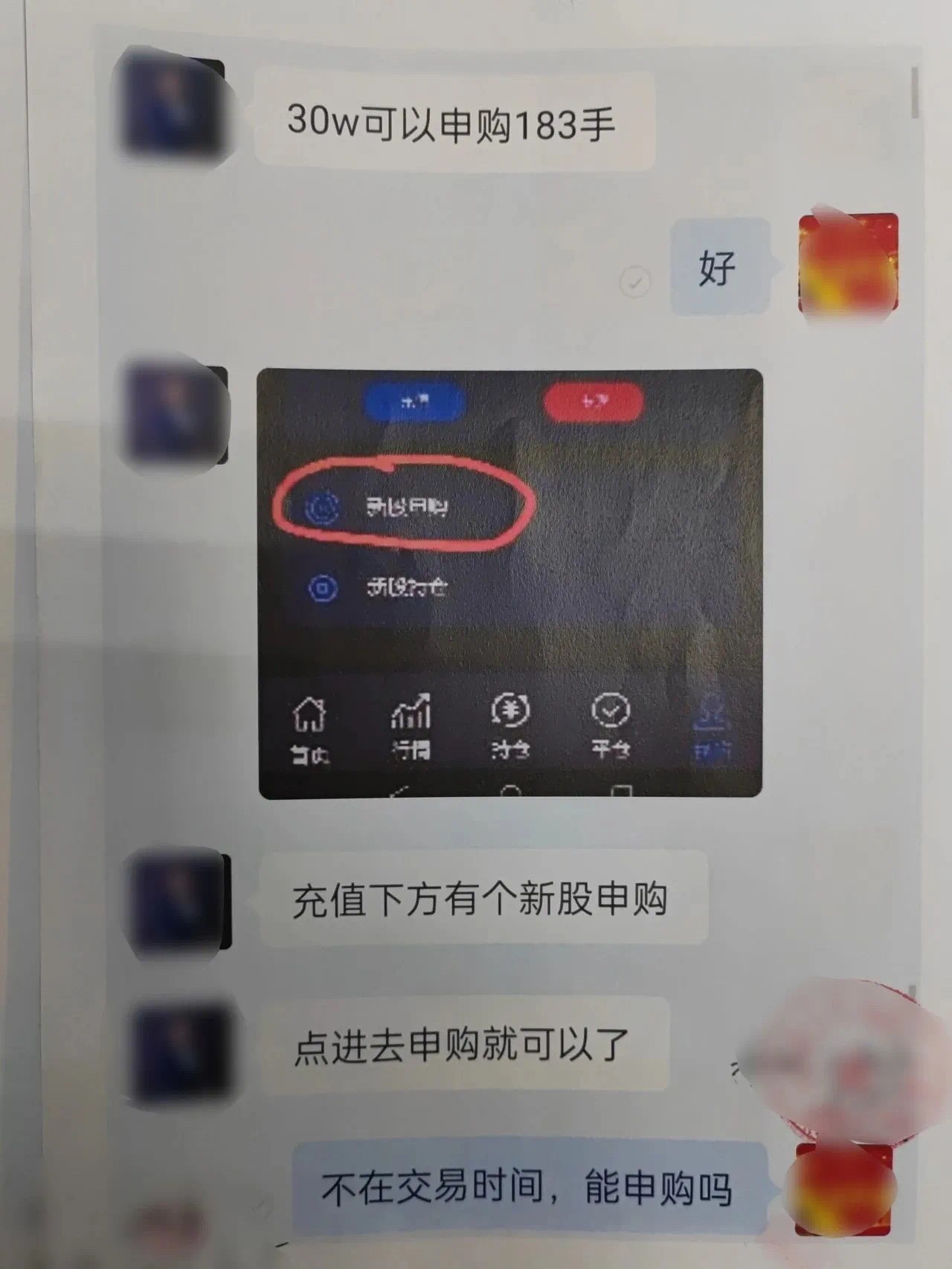 王女士平時熱衷炒股,有自己的“股友圈”。最近有人介紹給她一位所謂“神人”,加微信后方稱自己“有人”,可以輕松幫她打新股和推薦優(yōu)質股,還讓她加群分享強勢個股、機構內部消息、私募打新策略,觀看“內部”直播間、聽投資“大神”講解股票知識。甚至還能“幫你爭取到機構席位賬戶”,而這一切只要通過自己推薦的平臺就都能做到。