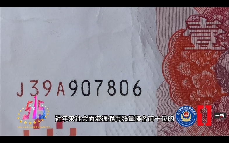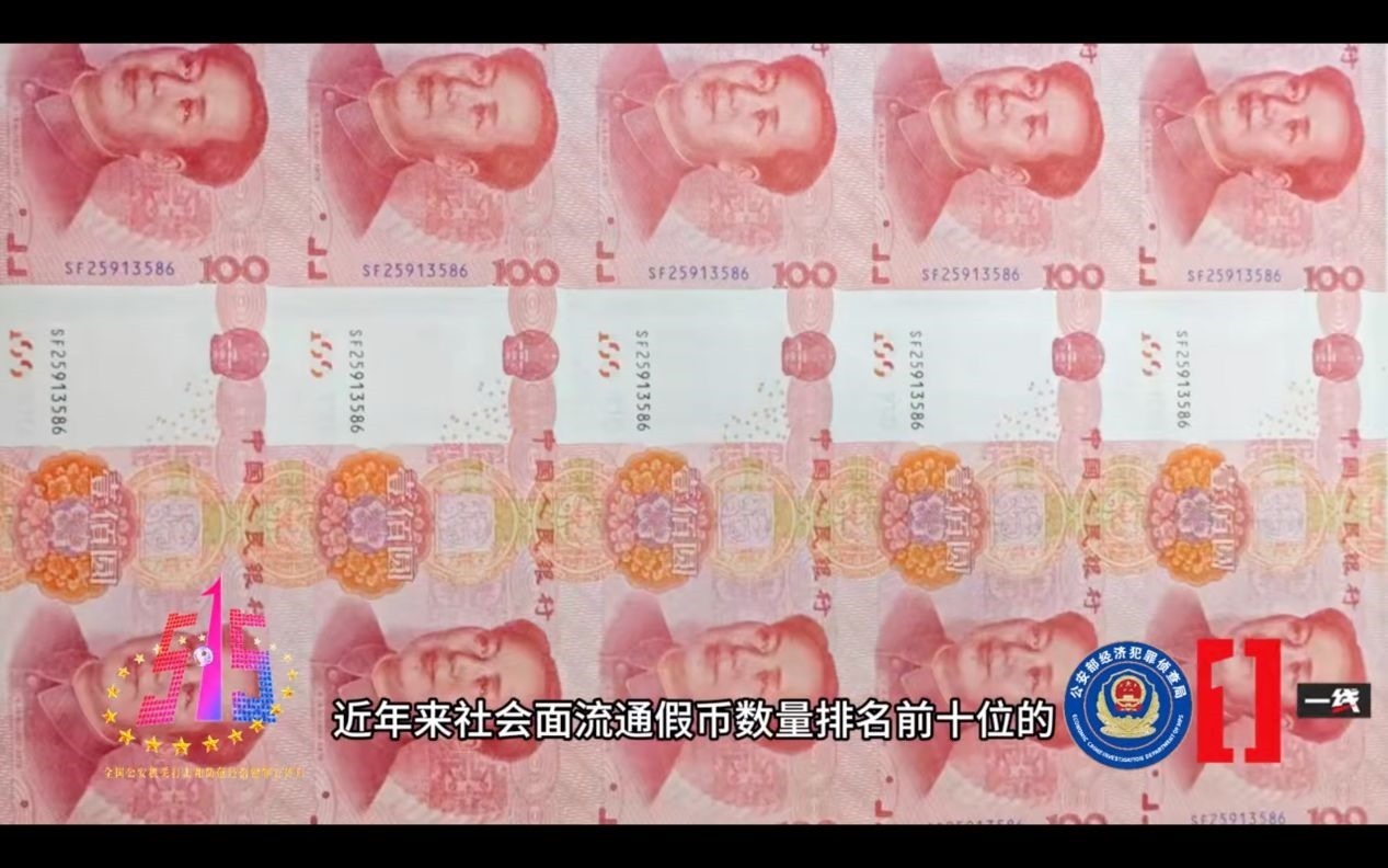 央視報(bào)道的2023年度打擊經(jīng)濟(jì)犯罪十大典型案例中,關(guān)于該案涉及假幣的相關(guān)畫面。