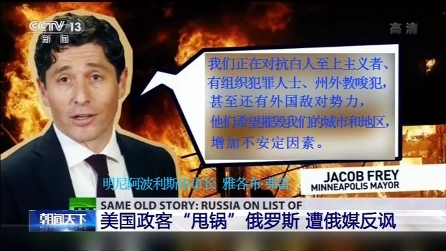 “今日俄羅斯”電視臺(tái)記者:說(shuō)白了,俄羅斯、白人至上主義者、販毒集團(tuán)我們這些外國(guó)勢(shì)力都一直在等待。等著讓一個(gè)明尼蘇達(dá)州的警察,殺害了一個(gè)手無(wú)寸鐵的非洲裔美國(guó)人,直到這在美國(guó)掀起軒然大波,這劇本還真是又臭又長(zhǎng)?。?/p>