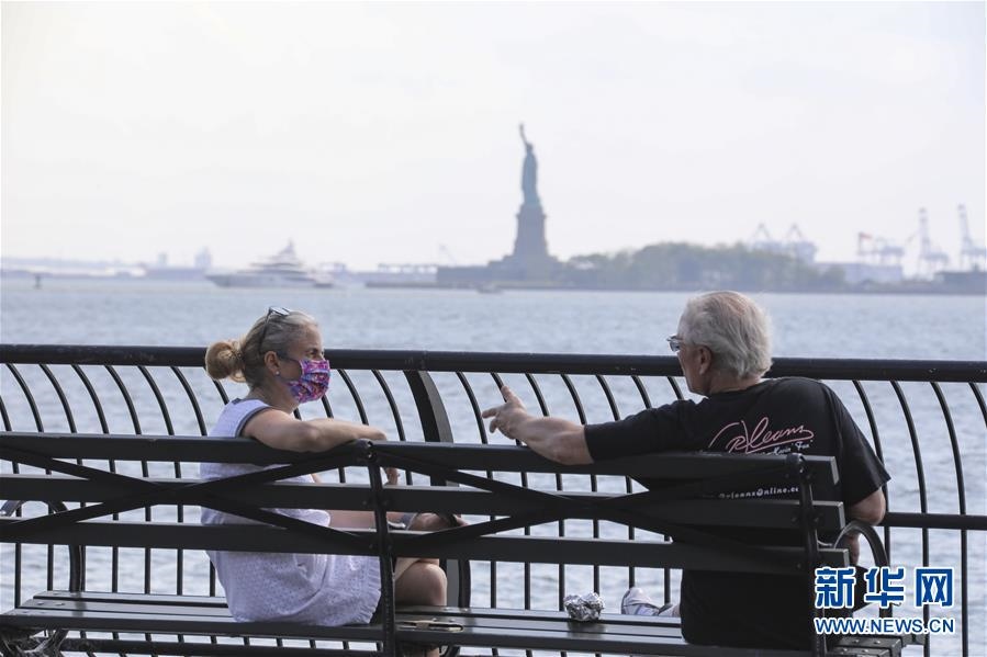 6月10日,人們在美國紐約一處公園內聊天。新華社記者王迎攝