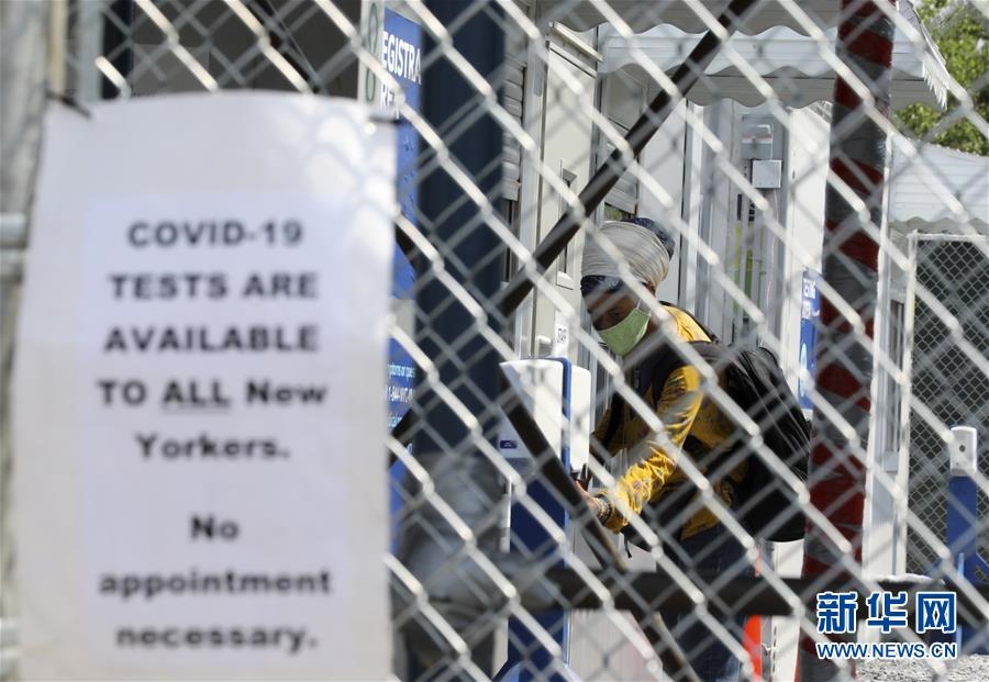 6月10日,一名女子在美國紐約一處新冠檢測點接受檢測。新華社記者王迎攝