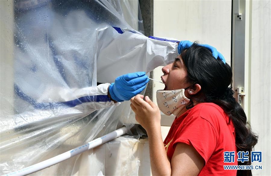 這是7月20日,醫(yī)護(hù)人員為印度新德里居民進(jìn)行新冠病毒檢測(cè)采樣。新華社發(fā)(帕塔·薩卡爾攝)