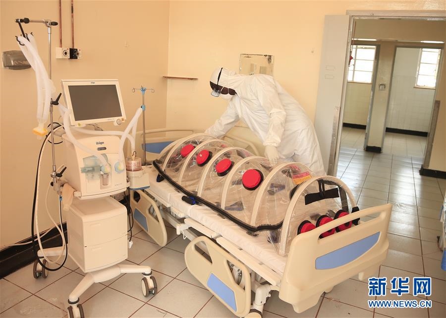 這是4月9日,在津巴布韋首都哈拉雷,一名醫(yī)生在由中資民營(yíng)企業(yè)出資升級(jí)改造的威爾金斯醫(yī)院內(nèi)工作。剛剛經(jīng)歷經(jīng)濟(jì)衰退和旱災(zāi)的津巴布韋,新冠疫情的防控壓力很大。在抗擊疫情的關(guān)鍵時(shí)刻,中國(guó)政府通過(guò)多種形式幫助津政府和人民,為津巴布韋的抗疫貢獻(xiàn)“中國(guó)力量”。新華社發(fā)(肖恩·朱薩攝)