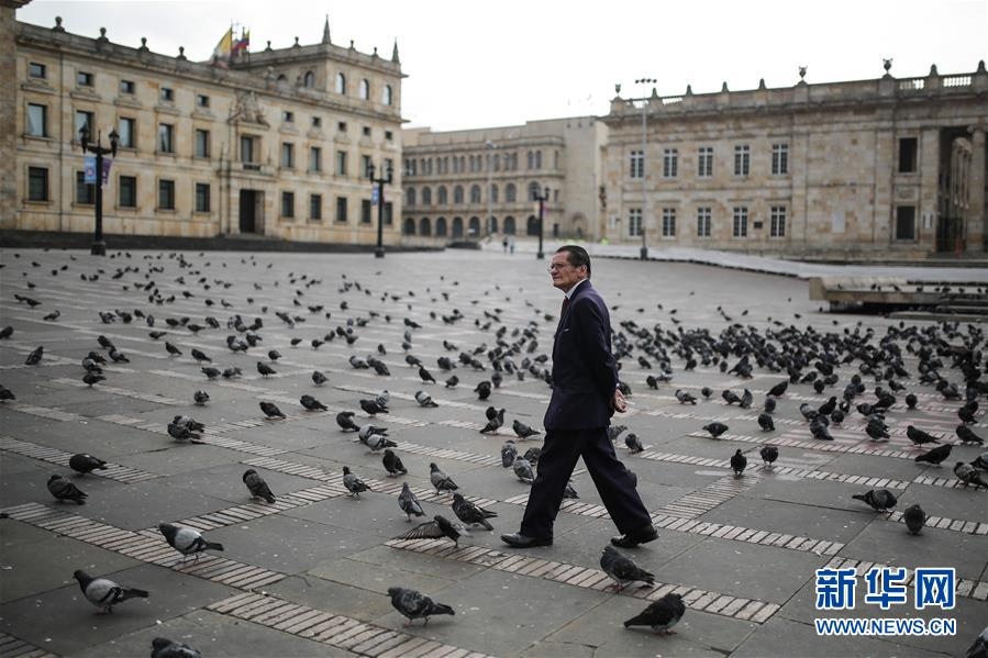 這是3月20日,在哥倫比亞波哥大,一名男子走在平時(shí)熙熙攘攘的玻利瓦爾廣場(chǎng)。新華社發(fā)(約翰·帕斯攝)