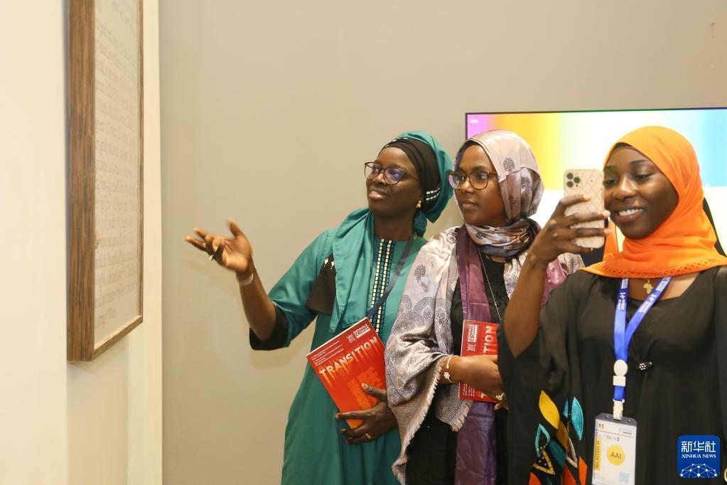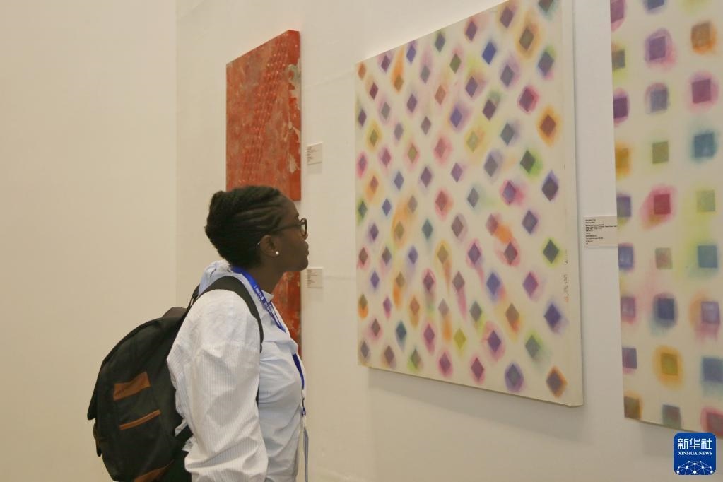 5月19日,觀眾在塞內(nèi)加爾達喀爾非洲當代藝術(shù)雙年展的中國館參觀。新華社記者王子正攝