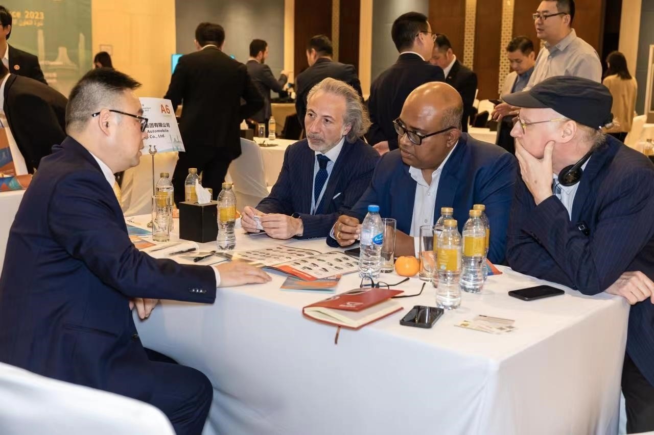 在企業(yè)自由對接環(huán)節(jié),參會(huì)的廣西企業(yè)高管與阿聯(lián)酋當(dāng)?shù)仄髽I(yè)代表,在會(huì)場設(shè)立的物流、農(nóng)產(chǎn)品及食品、裝備制造、通關(guān)服務(wù)、影視動(dòng)漫、清真產(chǎn)品等領(lǐng)域企業(yè)洽談區(qū),進(jìn)行了面對面洽談,現(xiàn)場交流氣氛熱烈。