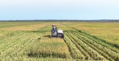 中國—烏干達農(nóng)業(yè)合作產(chǎn)業(yè)園里,員工正在收割豐收的旱稻。中國—烏干達農(nóng)業(yè)合作產(chǎn)業(yè)園供圖