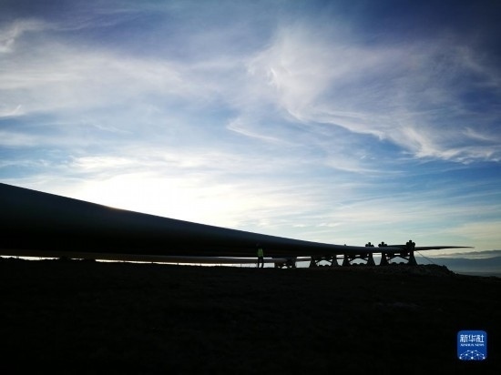 這張未標(biāo)注時間的照片拍攝的是波黑伊沃維克風(fēng)電場施工現(xiàn)場的風(fēng)電葉片(手機(jī)照片)。新華社發(fā)(王馳攝)