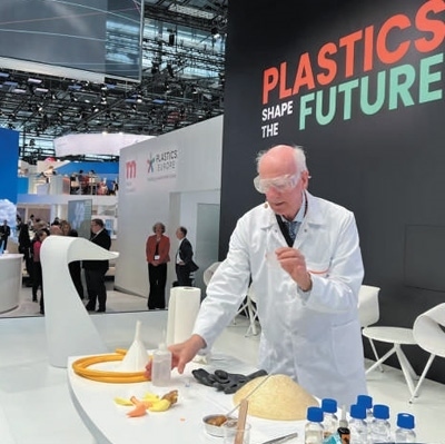 2022年10月20日,在德國杜塞爾多夫塑料展上展示的可再生塑料和回收技術(shù)。本報記者 李 強攝