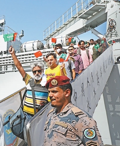 陽(yáng)光照耀下,軍艦上飄揚(yáng)的五星紅旗格外鮮艷耀眼。懸掛在軍艦上的紅色橫幅上寫(xiě)著“祝同胞一路平安”,與五星紅旗交相輝映。在迎接人群的陣陣歡呼聲中,蘇丹撤離人員緩步走下軍艦舷梯。他們中,既有滿(mǎn)頭白發(fā)的老人,也有被抱在懷中咿呀學(xué)語(yǔ)的嬰孩,盡管身體有些疲憊,神情已十分放松。
