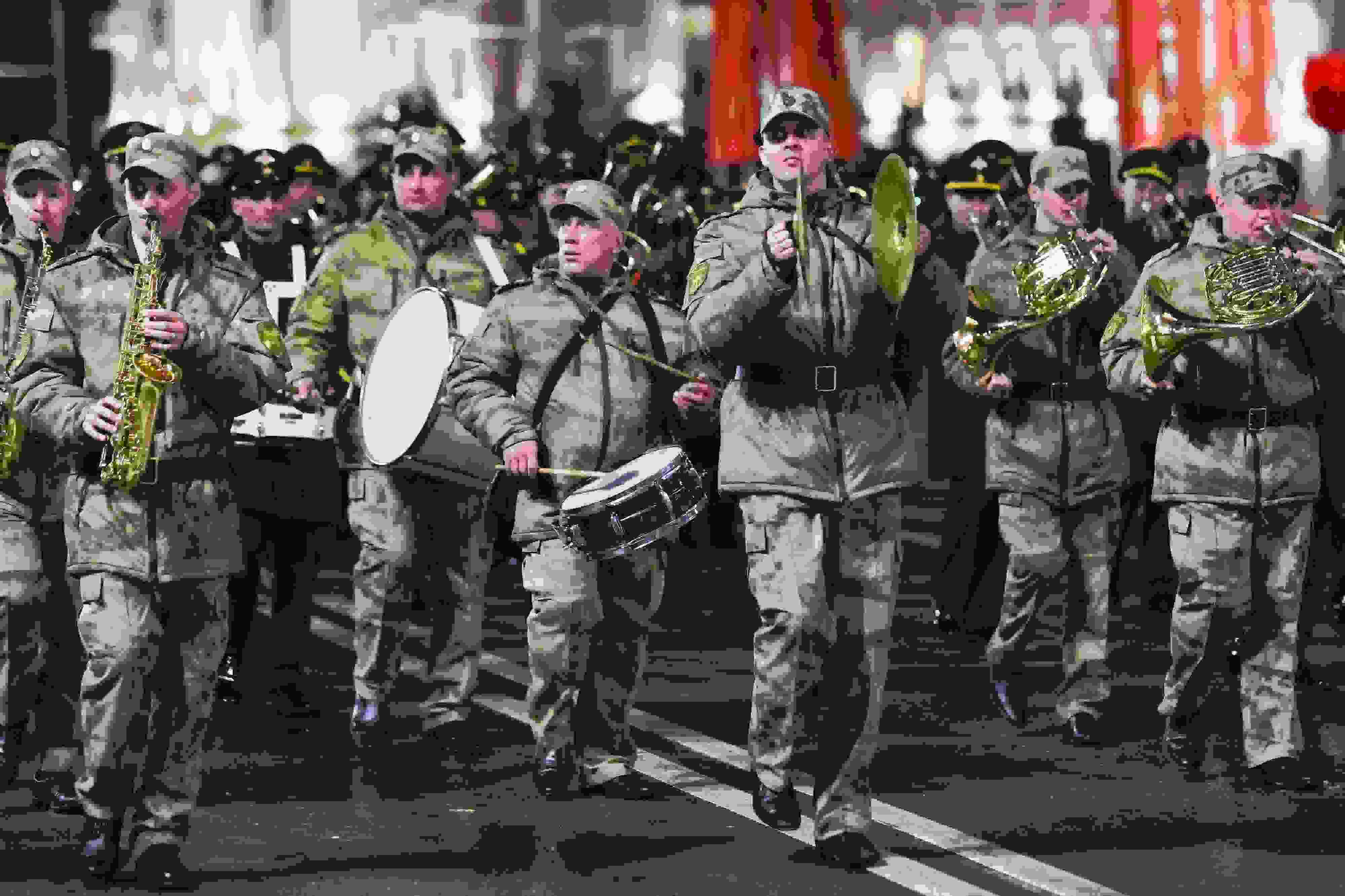 當(dāng)?shù)貢r(shí)間2023年5月2日,俄羅斯頓河畔羅斯托夫,士兵們參加勝利日閱兵彩排。 視覺中國