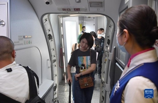 5月13日,旅客登上西安-烏魯木齊-阿什哈巴德首趟航班。