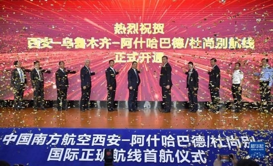 5月13日,西安-阿什哈巴德/杜尚別國(guó)際正班航線首航儀式在西安舉行。