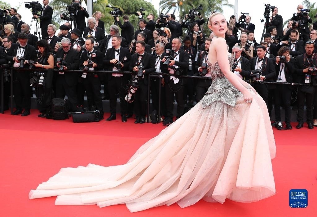 5月16日,在法國戛納舉行的第76屆戛納國際電影節(jié)上,演員埃勒·范寧亮相紅毯。
