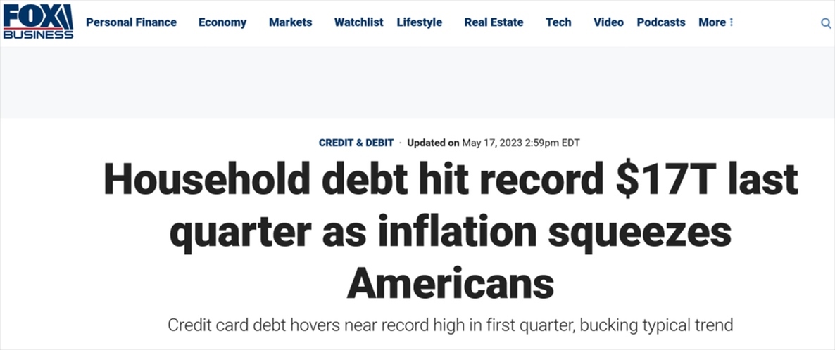 【瞰全球】“債臺(tái)高筑”、被通脹“榨干”!一季度美國(guó)家庭債務(wù)總額破紀(jì)錄