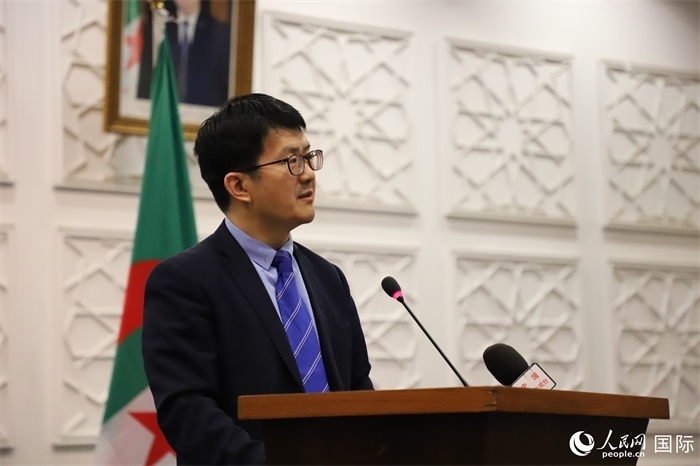 中國(guó)駐阿爾及利亞大使李健致辭。人民網(wǎng)記者 王傳寶攝
