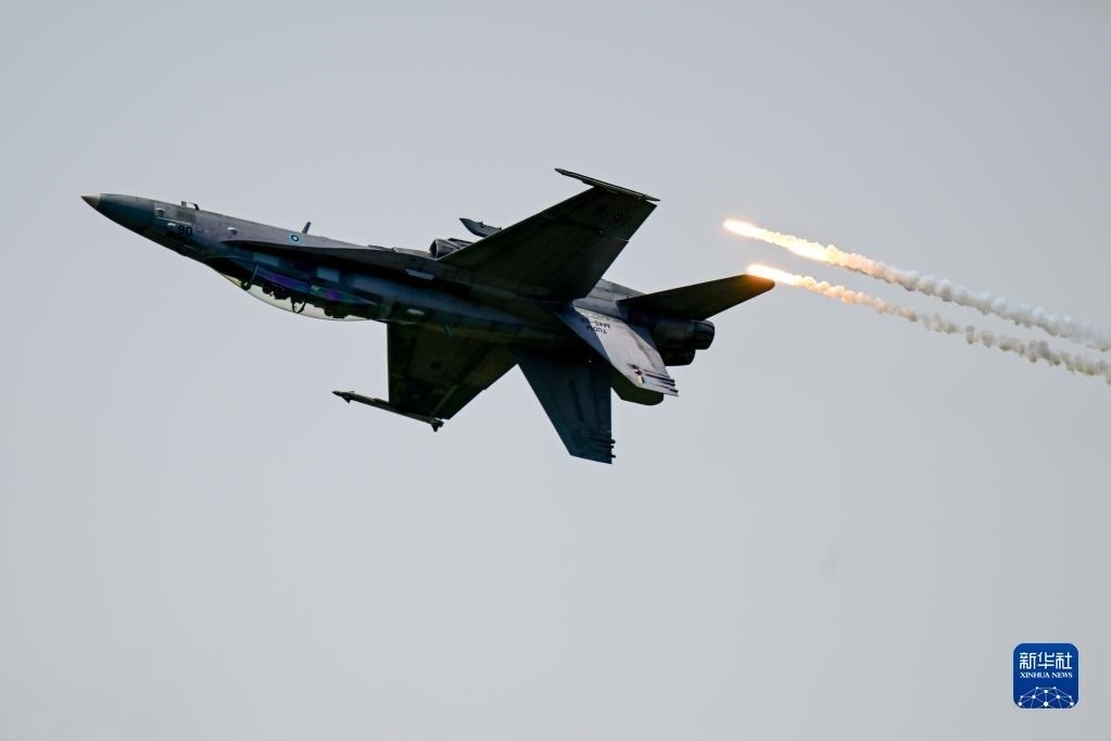 5月25日,在馬來(lái)西亞蘭卡威舉行的第16屆蘭卡威國(guó)際海事和航空展上,一架馬來(lái)西亞皇家空軍的F/A-18D戰(zhàn)機(jī)進(jìn)行表演。