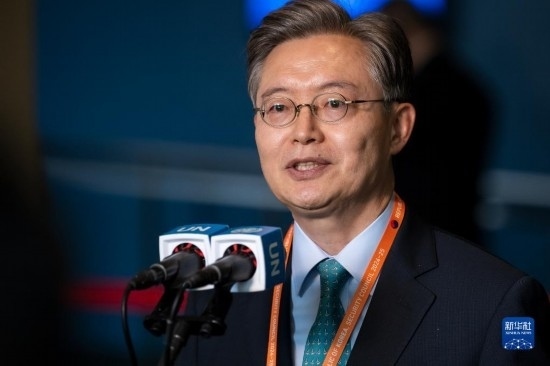 6月6日,在位于紐約的聯(lián)合國總部,韓國常駐聯(lián)合國代表黃浚局在韓國當(dāng)選聯(lián)合國安理會(huì)非常任理事國后在記者見面會(huì)上講話。新華社發(fā)(聯(lián)合國供圖/洛伊·費(fèi)利佩攝)