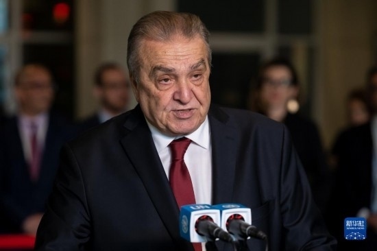 6月6日,在位于紐約的聯(lián)合國總部,阿爾及利亞常駐聯(lián)合國代表阿馬爾·本賈瑪在阿爾及利亞當(dāng)選聯(lián)合國安理會(huì)非常任理事國后在記者見面會(huì)上講話。新華社發(fā)(聯(lián)合國供圖/洛伊·費(fèi)利佩攝)