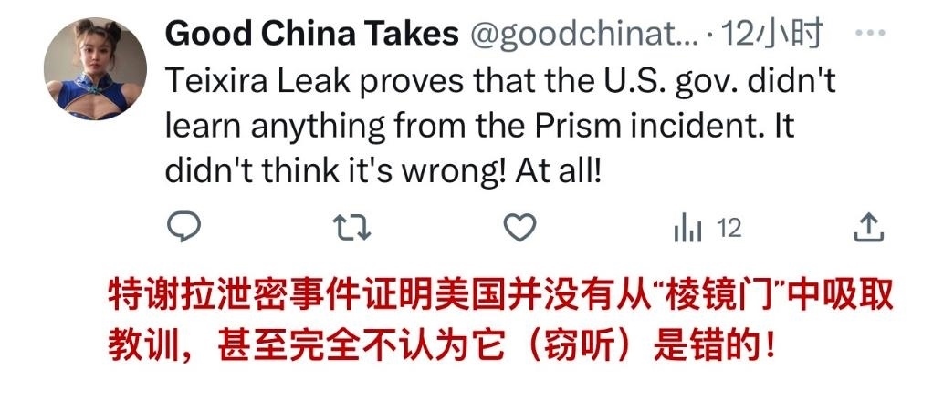 在“棱鏡門(mén)”事件十周年之際,新華社推出AI短視頻《“棱鏡門(mén)”十周年,美國(guó)監(jiān)控帝國(guó)的本質(zhì)從未改變》,短短24小時(shí)即在海外社交媒體上獲得超百萬(wàn)的瀏覽量。