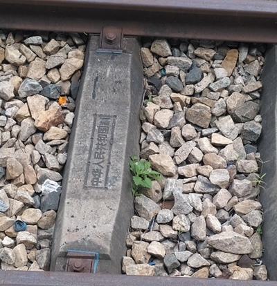 鐵軌枕木上印有“中華人民共和國制”字樣。圖為本報記者黃培昭攝