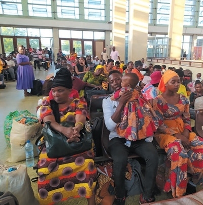 乘客在達累斯薩拉姆火車站候車大廳候車。圖為本報記者黃培昭攝