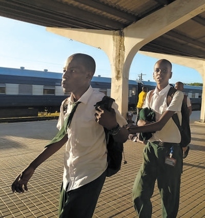 搭乘坦贊鐵路列車上學的學生。圖為本報記者黃培昭攝