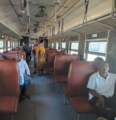 乘客乘坐坦贊鐵路列車。圖為本報記者黃培昭攝