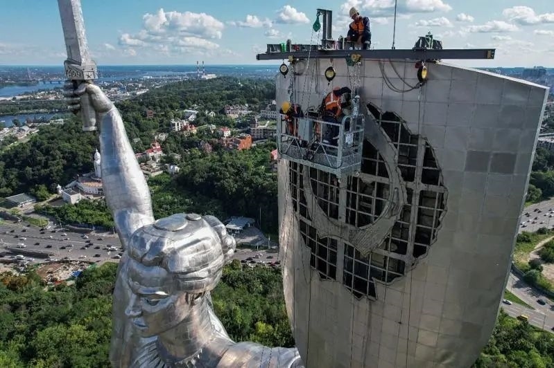 烏克蘭“祖國母親”雕像上的蘇聯(lián)國徽被替換成“三叉戟”
