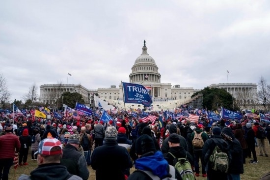 2021年1月6日,在美國首都華盛頓的國會大廈前,時任總統(tǒng)特朗普的支持者舉行示威游行。部分示威者沖擊國會大廈,導致國會參眾兩院認證總統(tǒng)選舉結果的聯席會議中斷數小時。事件造成4名示威者和1名國會警察死亡。新華社記者劉杰攝