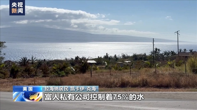 央視記者 劉旭:整個毛伊島都是異常干燥炎熱的天氣,所以在我旁邊也是連片枯草的景象。整個毛伊島西部地區(qū),包括拉海納地區(qū),淡水資源非常緊缺。當(dāng)?shù)匾恍┚用竦纳钣盟窃趺磥淼哪兀渴窃谶h(yuǎn)處山上地勢較高的地區(qū),有一些儲水設(shè)施或者蓄水池,把一些天然的降水和高山融水儲存起來,另外再通過地表徑流流經(jīng)到生活的不同區(qū)域,很多當(dāng)?shù)孛癖姇惭b這樣的水閥、水表把水引到自己的家中。在8月8日拉海納大火發(fā)生之后,當(dāng)?shù)氐乃Y源使用權(quán)利也出現(xiàn)很多爭議。