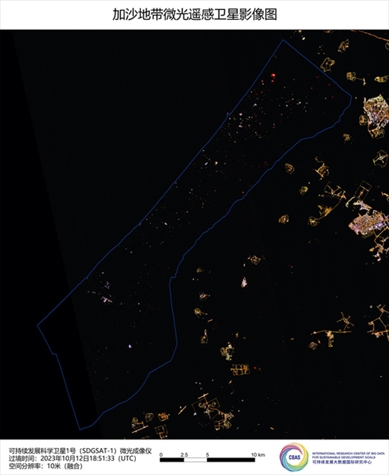 可持續(xù)發(fā)展科學(xué)衛(wèi)星1號(hào)當(dāng)?shù)貢r(shí)間10月12日晚10時(shí)左右獲取的最新衛(wèi)星影像也顯示,在徹底斷電之后,整個(gè)加沙地帶的夜晚幾乎完全陷入了黑暗,只有零星的燈火,這也意味著整個(gè)加沙地帶陷入了癱瘓,當(dāng)?shù)孛癖姷幕旧钜褵o法得到保障。