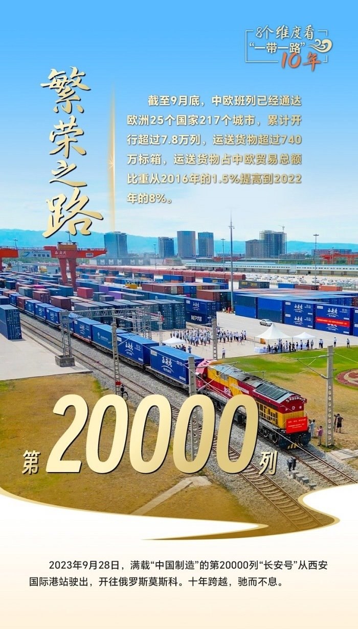 第20000列“長安號”從西安國際港站駛出,給世界送去“中國制造”;中老鐵路突破重山阻隔,成為國際物流的“黃金通道”;蒙內鐵路聯(lián)通東西,是東非鐵路網的開端,更是一條充滿希望的經濟走廊……一個個合作豐碑,搭建起高效的貿易通道網絡平臺,助力各國走好走穩(wěn)“一帶一路”這條繁榮之路。